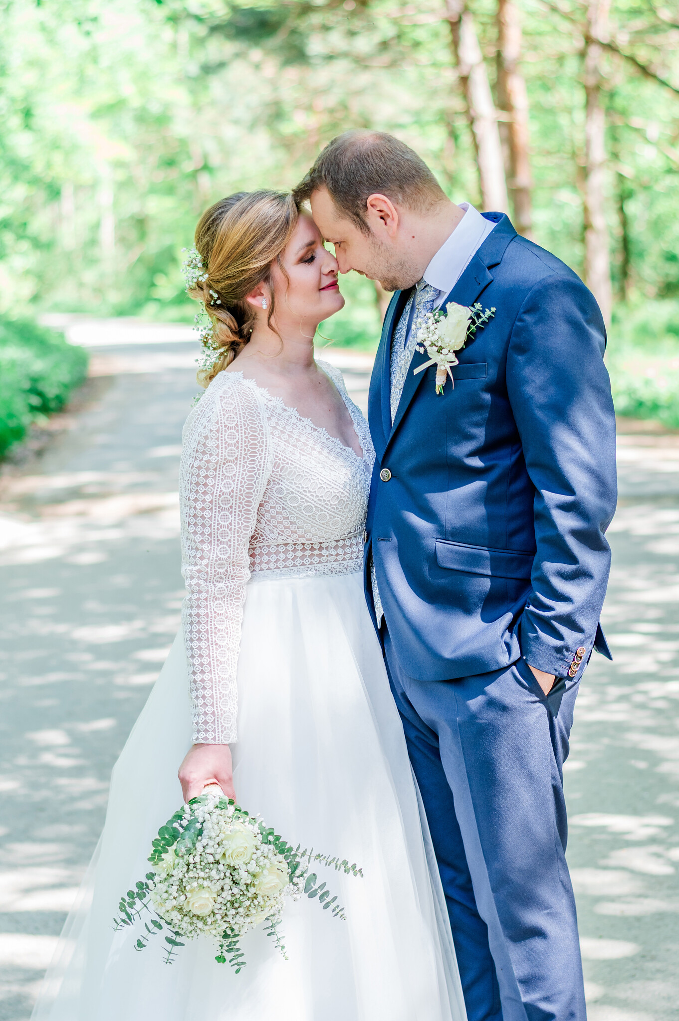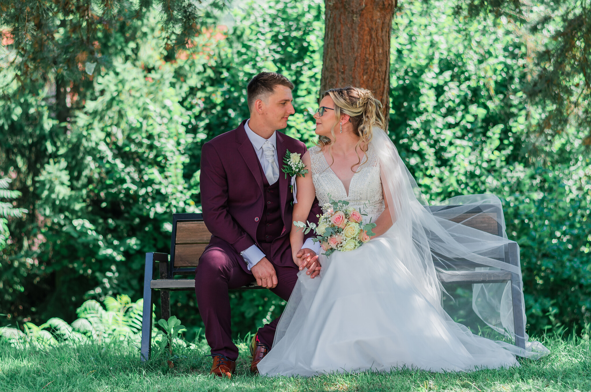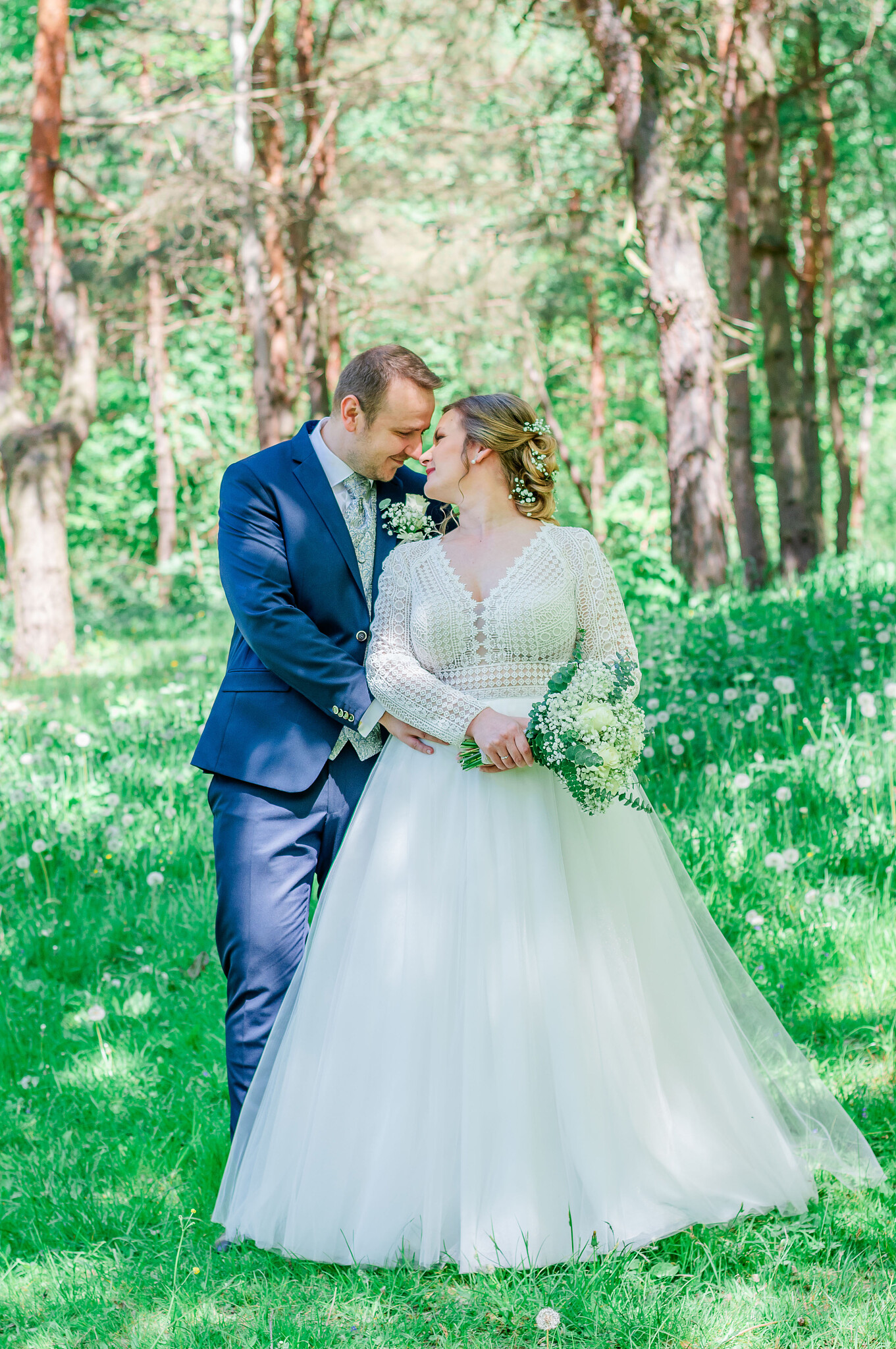 Vďaka stromom vzniká prirodzený tieň a mäkké svetlo, ktoré lichotí portrétom počas celého dňa. Veľkou výhodou je aj dostupnosť – nemusíte nikam cestovať a fotenie zvládnete rýchlo aj počas svadobného dňa.