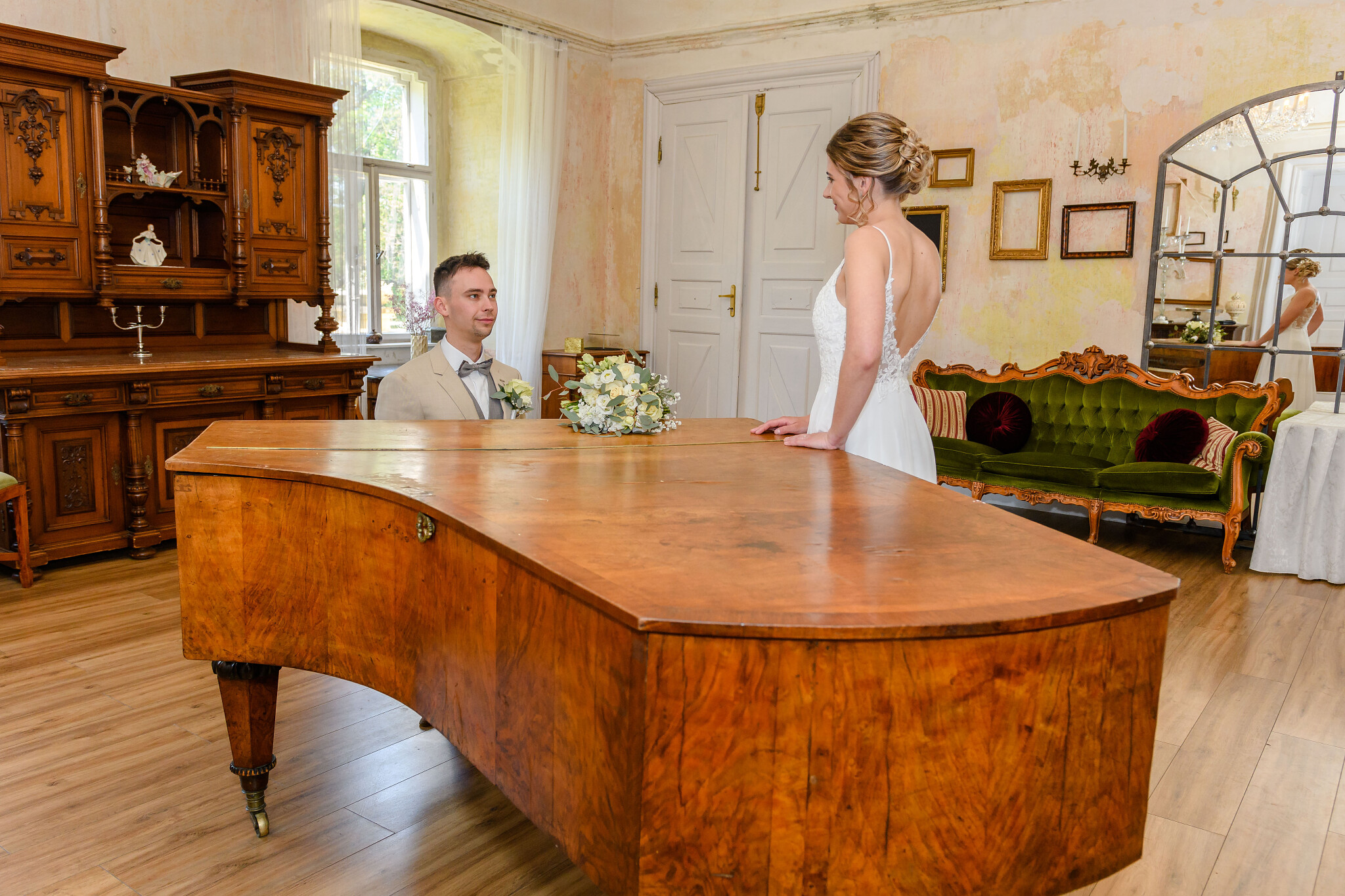 Fričovce ponúkajú príjemné a pokojné prostredie na svadobné fotenie v okolí Prešova. Najviac vyniknú portréty v exteriéri, kde pôsobí zeleň a prirodzené svetlo veľmi jemne a prirodzene.