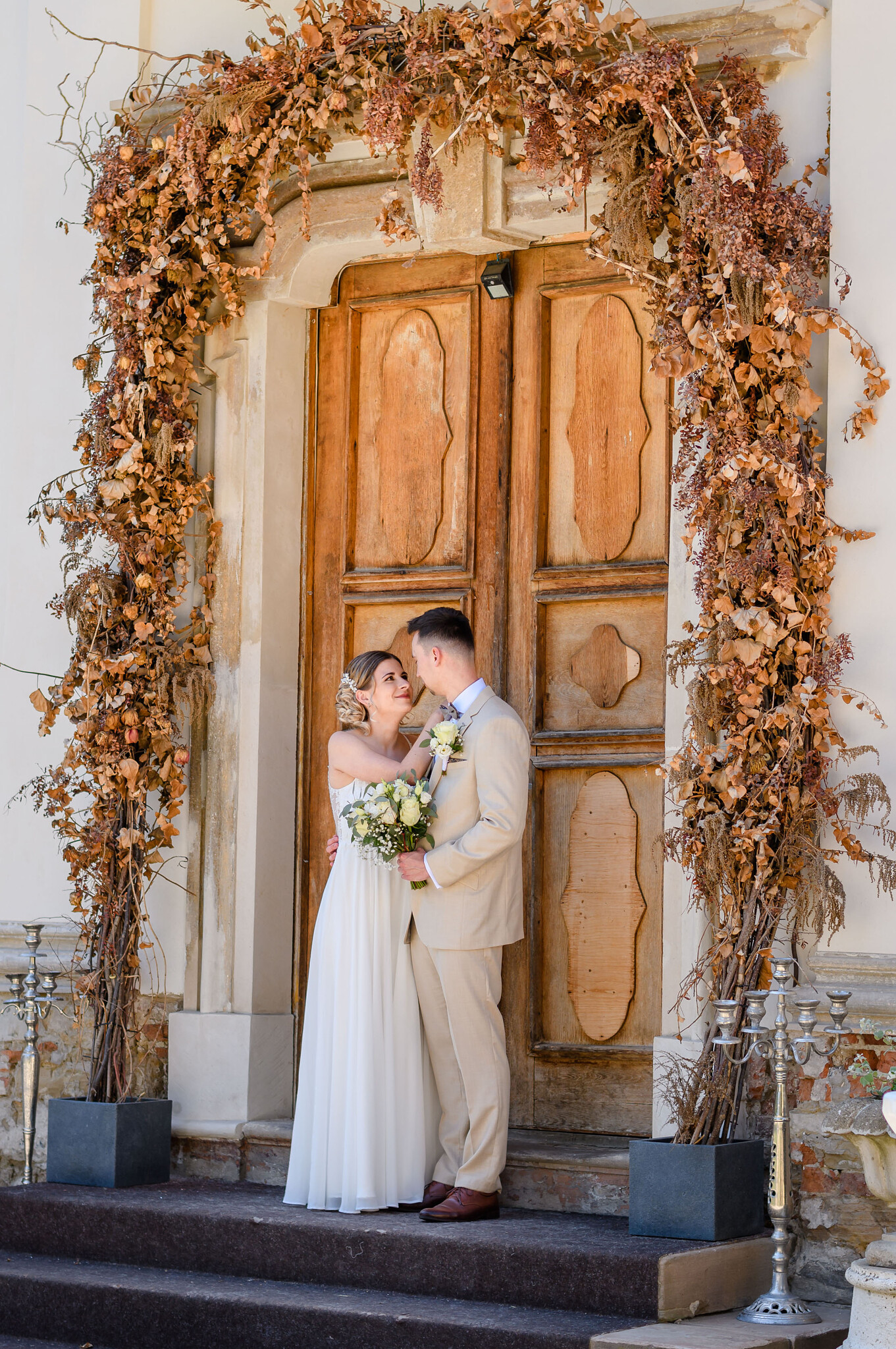 Ak chcete mať portréty priamo v deň svadby, odporúčam vybrať miesto, ktoré ponúka interiér aj exteriér. Nemusíte sa obávať ako nafotíme svadobné foto ak by pršalo.