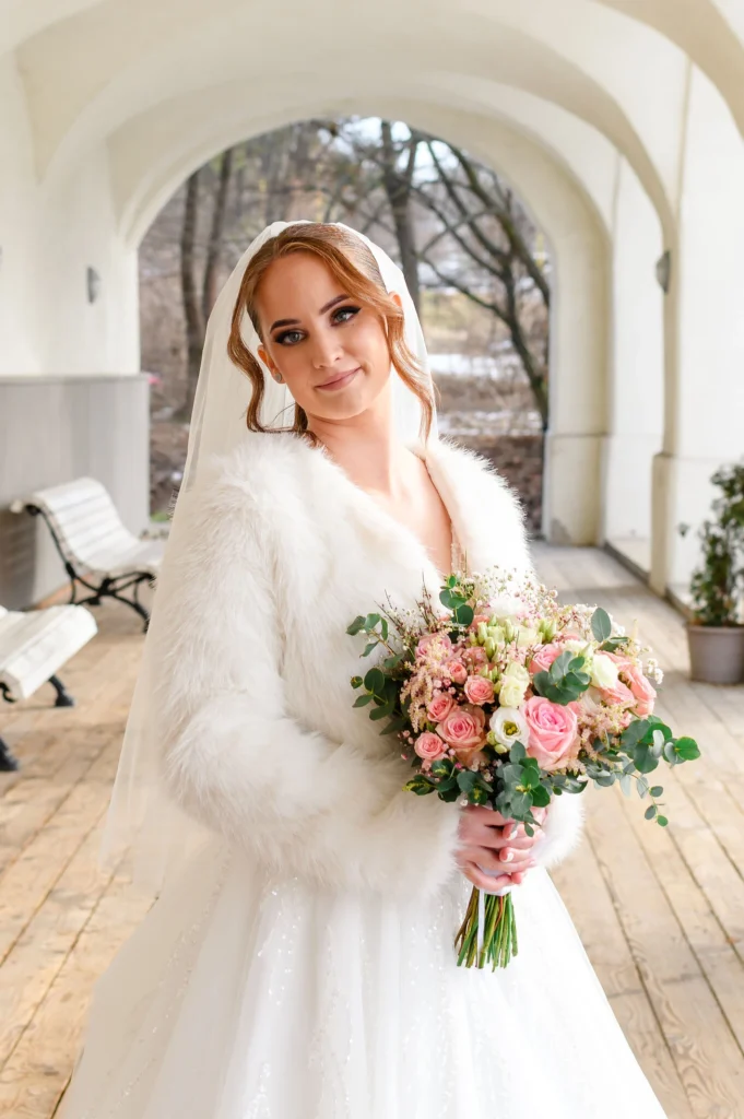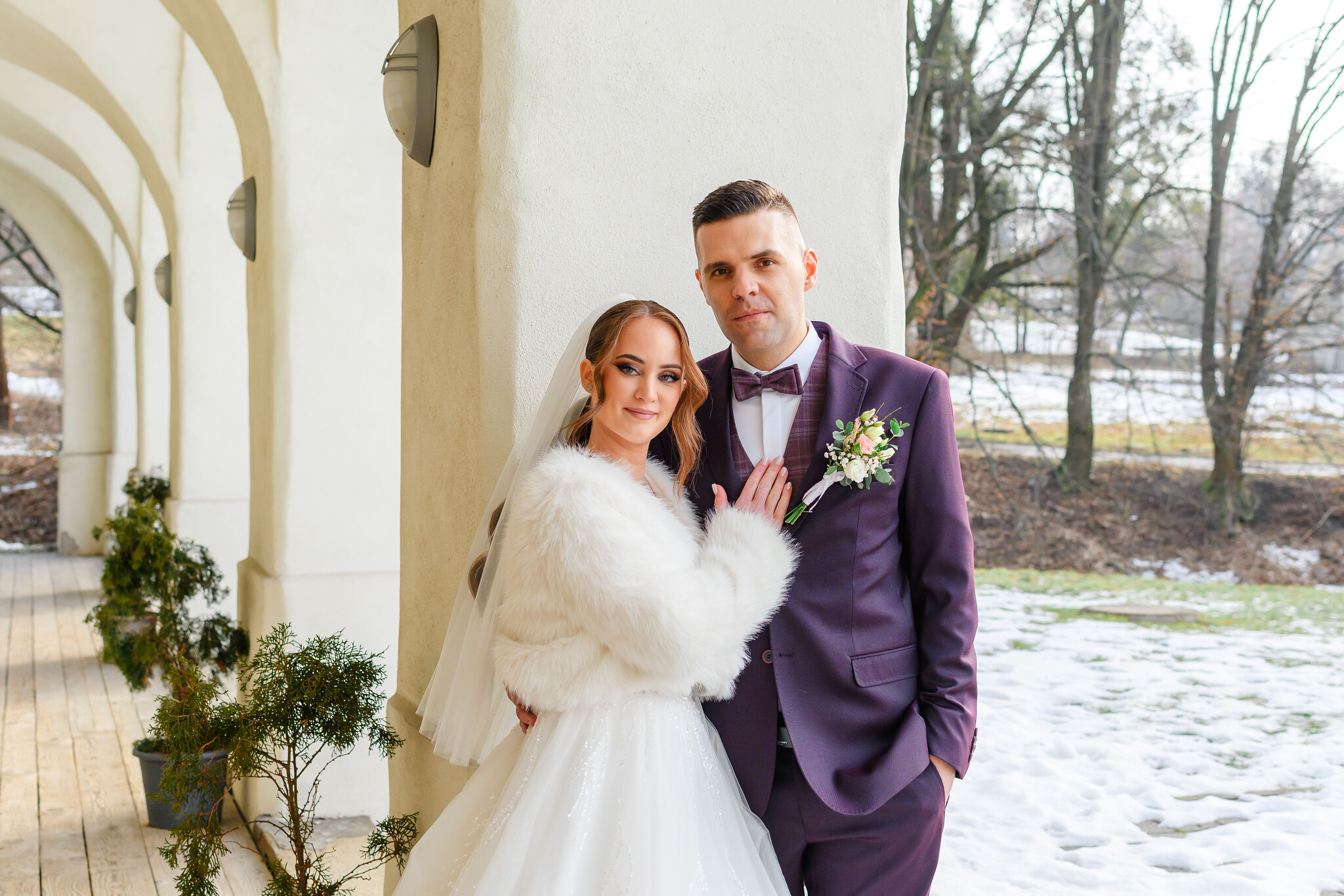 Pred vstupom Múzea Solivar sa nachádza svetlá klenutá chodba s oblúkmi, ktorá vytvára čisté a nadčasové pozadie pre svadobné portréty. Práve tento priestor pôsobí veľmi jemne a elegantne, bez rušivých prvkov.